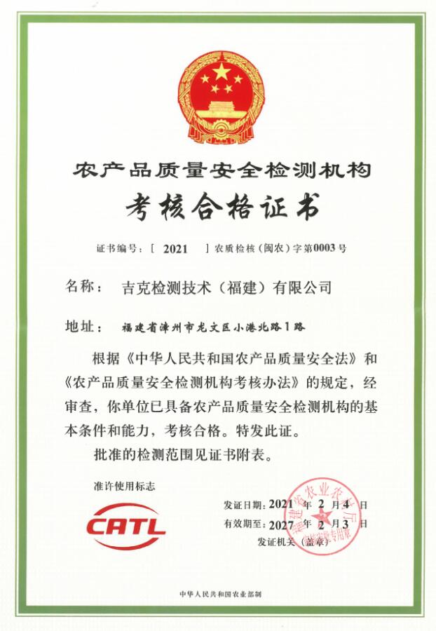 吉克檢測技術(shù)(福建)有限公司,位于福建省漳州市龍文區(qū)小港北路1號(hào),于2019年8月注冊成立,是一家獨(dú)立的第三方檢測公司。公司已經(jīng)通過檢驗(yàn)檢測機(jī)構(gòu)計(jì)量認(rèn)證(CMA)、農(nóng)產(chǎn)品質(zhì)量安全檢測機(jī)構(gòu)資質(zhì)認(rèn)證(CATL),獲得中國合格評定國家認(rèn)可委員會(huì)(CNAS)認(rèn)可。公司本著“嚴(yán)謹(jǐn)、規(guī)范、高效、協(xié)作”的原則和對客戶及社會(huì)高度負(fù)責(zé)的精神,充分利用本公司優(yōu)質(zhì)的檢測環(huán)境、先進(jìn)的檢測設(shè)備和專業(yè)的技術(shù)人員,第一時(shí)間為客戶提供科學(xué)、公正、準(zhǔn)確的檢驗(yàn)檢測報(bào)告。 公司實(shí)驗(yàn)室面積1100多平方米,儀器設(shè)備兩百多臺(tái)(套),固定資產(chǎn)一千多萬元,在職員工31人,技術(shù)人員中的中高級(jí)職稱及同等能力人數(shù)占60%以上。我們的服...